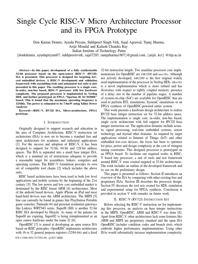 onto Xilinx’s Spartan-3E XC3S500E FPGA. The utilization of Isa, A. Waterman, Y. Lee, and D. Patterson, “The risc-v instruction set