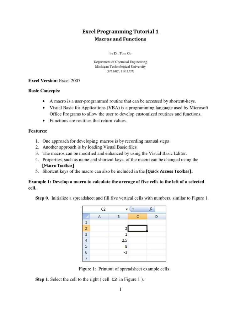 Example 1: Develop a macro to calculate the average of five cells to the left of a selected