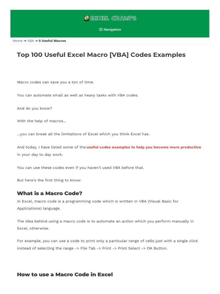 For example, you can use a code to print only a particular range of cells just with a single click