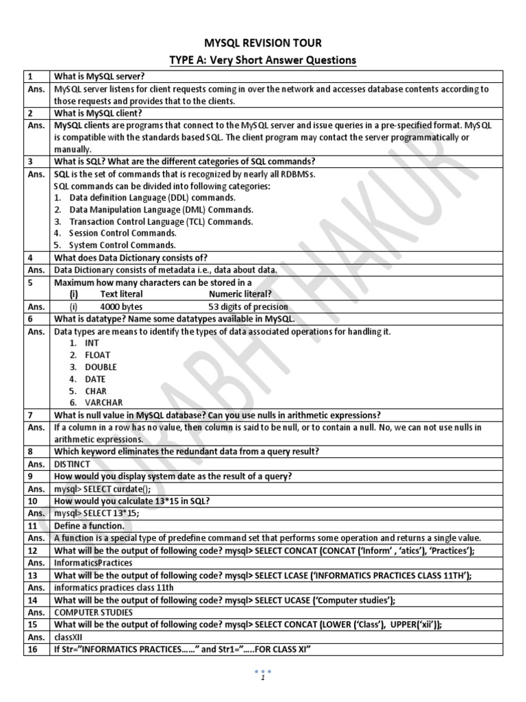 16 If Str=”INFORMATICS PRACTICES……” and Str1=”…..FOR CLASS XI”