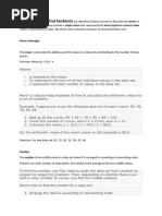 Mean: used for quantitative data and used for all the pieces of data. It is effected by extreme values