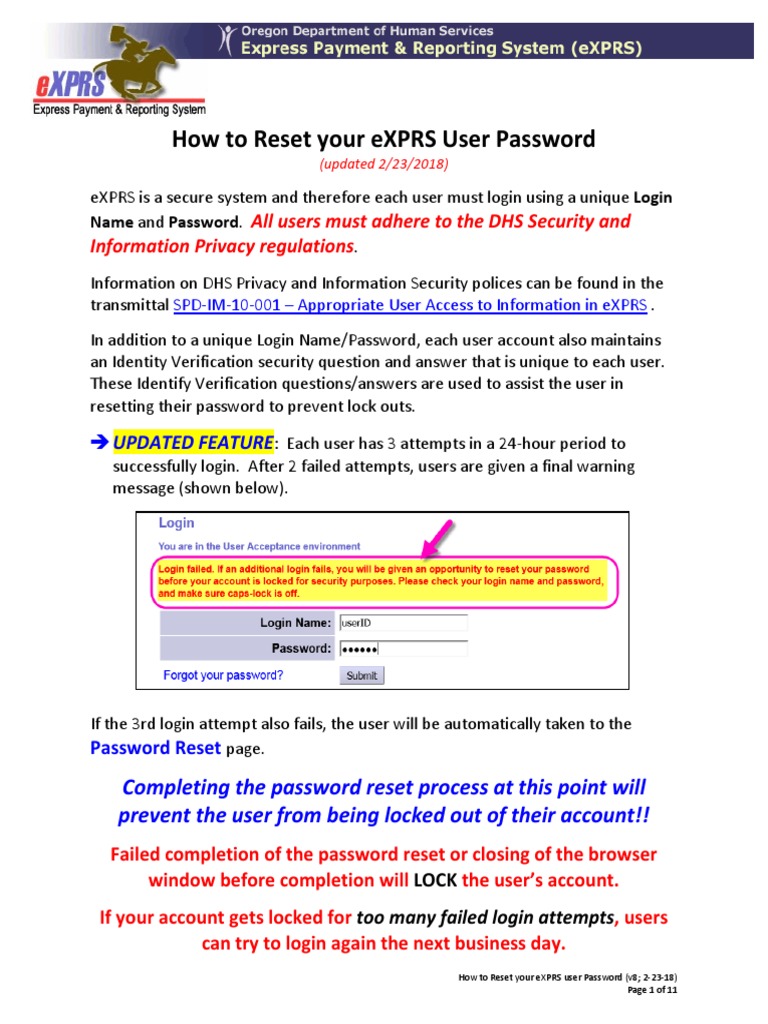 How to Reset your eXPRS user Password (v8; 2-23-18)