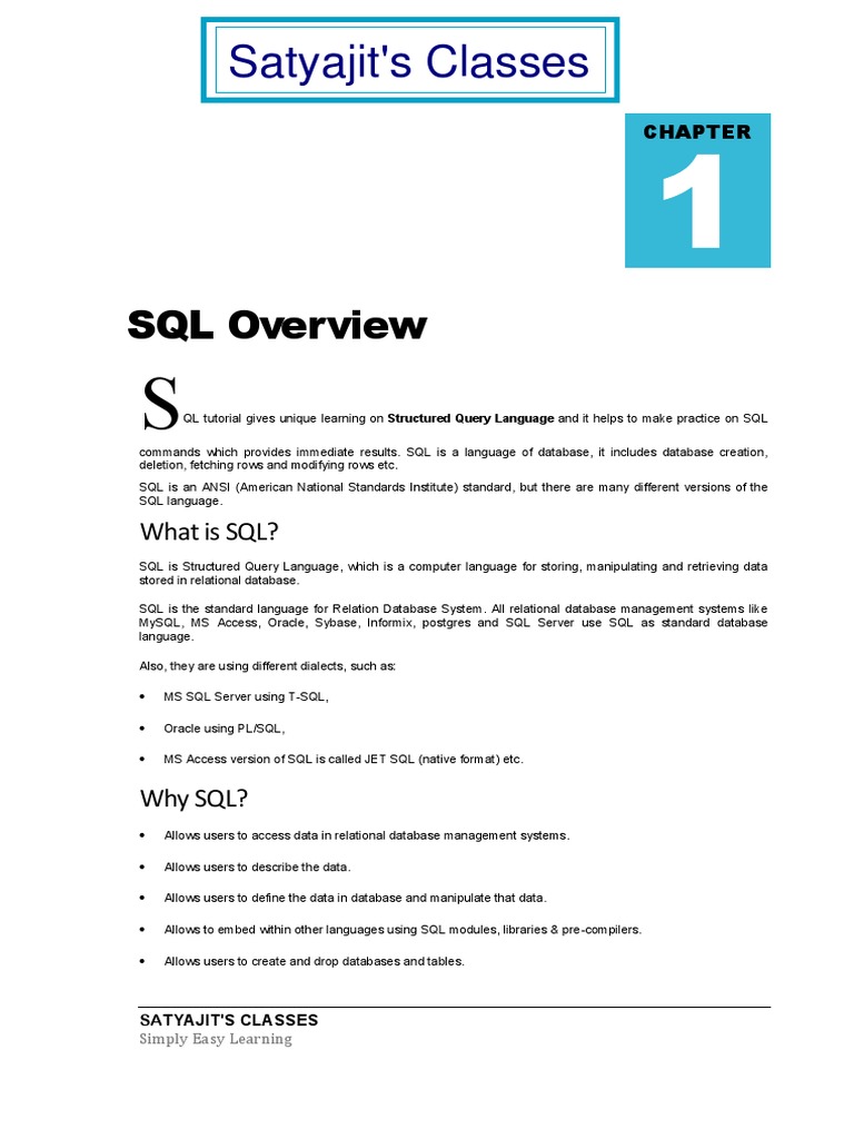 S QL tutorial gives unique learning on Structured Query Language and it helps to make practice on SQL