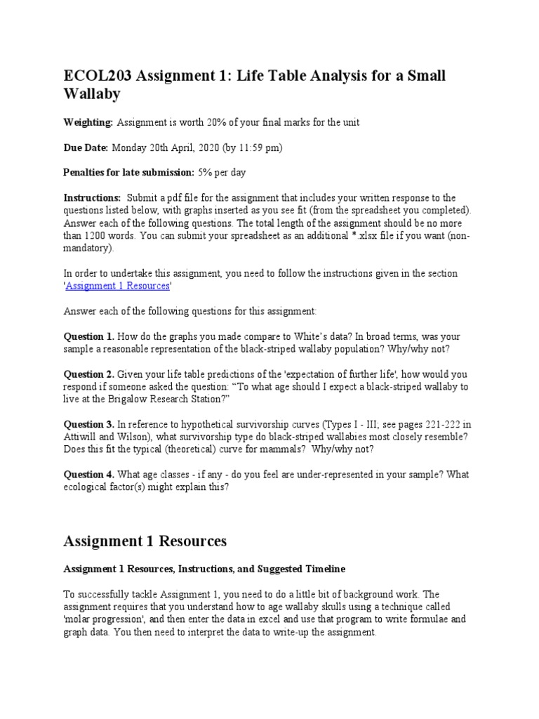 1. Read the Assignment 1 Instructions, and understand the concept of aging macropods
