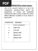 t BITWISE OPERATORS: Operators. These Operators are used specifically to