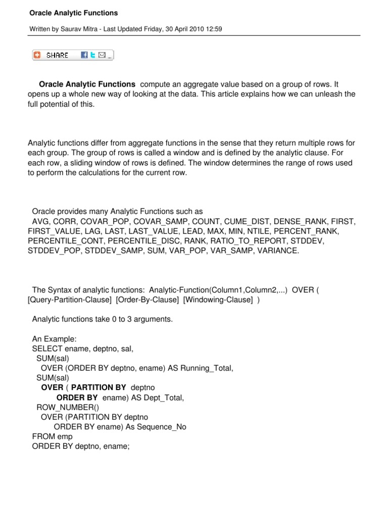Oracle Analytic Functions
