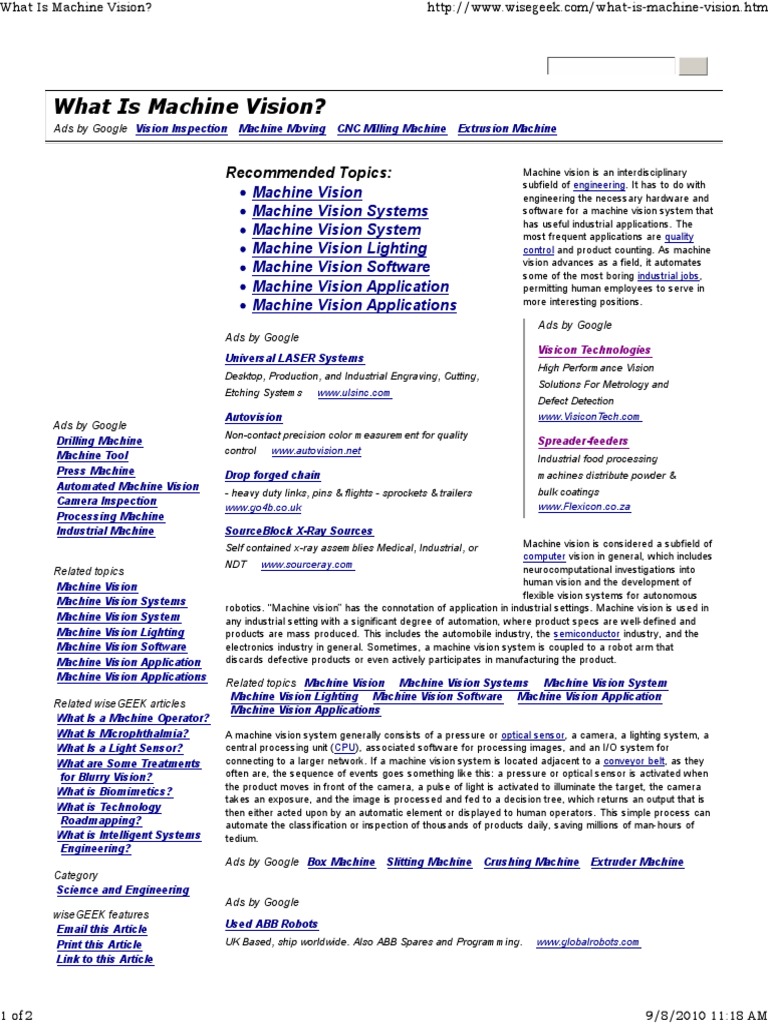 What Is Machine Vision? http://www.wisegeek.com/what-is-machine-vision.htm