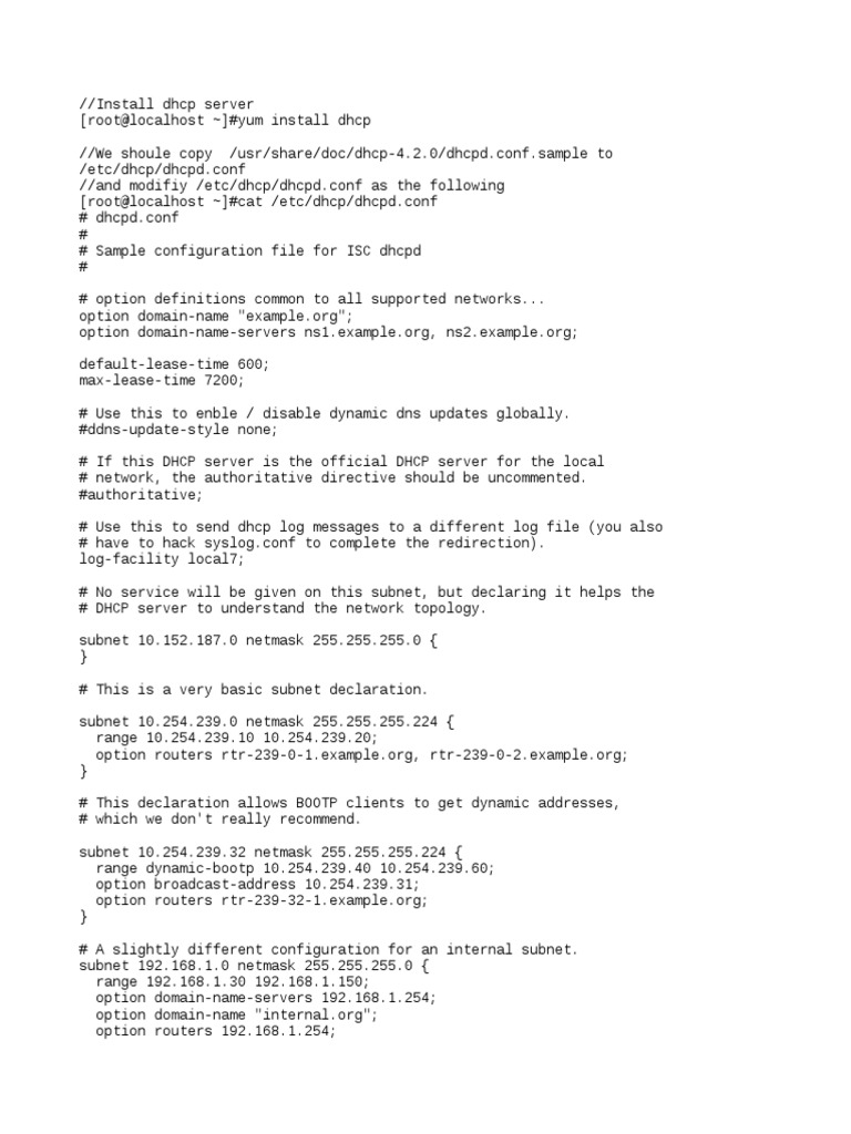 //We shoule copy /usr/share/doc/dhcp-4.2.0/dhcpd.conf.sample to