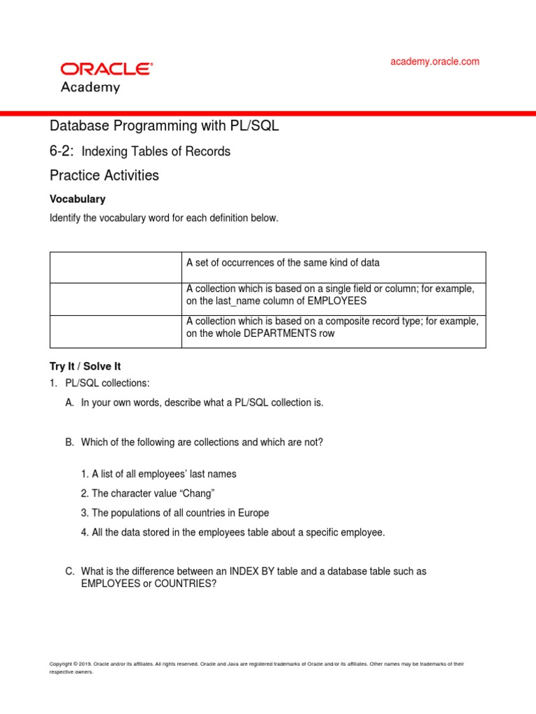 1. PL/SQL collections:
