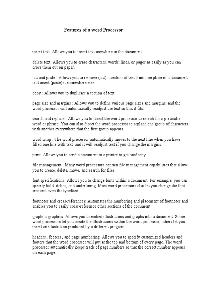A word processor allows users to easily edit documents through various functions: - It allows text to be inserted, deleted, copied, cut and pasted anywhere in a document. - Additional features include changing fonts, page layout, inserting images and tables, checking spelling and grammar, and printing documents. - Microsoft Word is a popular word processor that provides templates and tools to simplify document creation and editing.