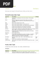 Data types and ranges for Microsoft Access, MySQL and SQL Server.
