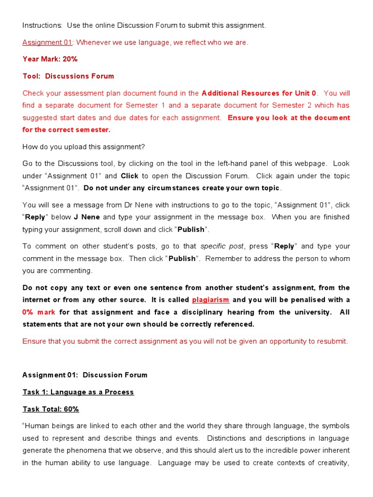 You will see a message from Dr Nene with instructions to go to the topic, “Assignment 01”, click
