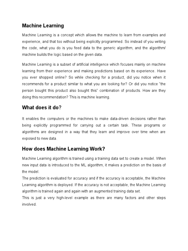 experience, and that too without being explicitly programmed. So instead of you writing