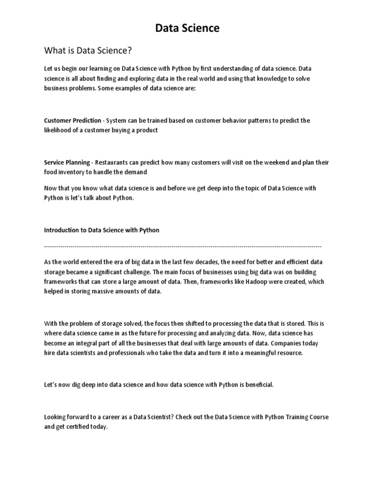 Now that you know what data science is and before we get deep into the topic of Data Science with