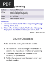 Assignment, and Comment, Numeric Data Types and Character Sets, Using functions and Modules. Decision Structures