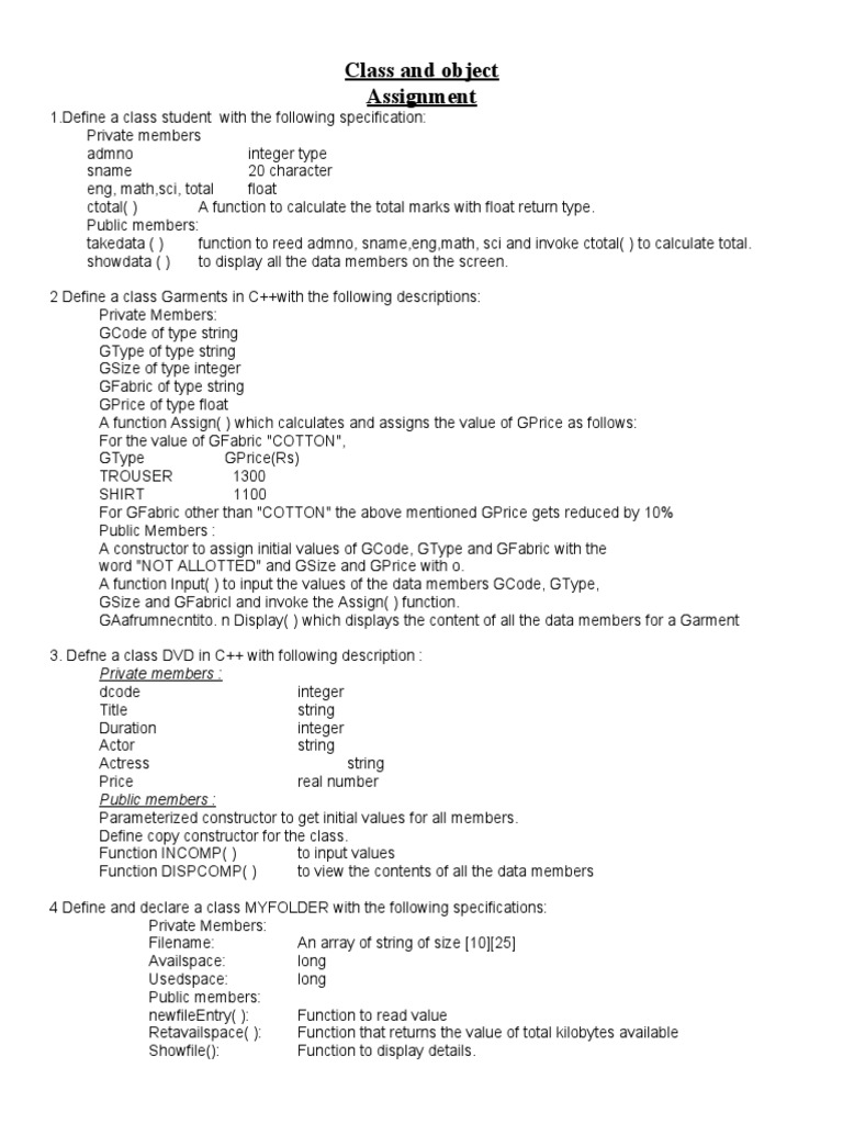 GAafrumnecntito. n Display( ) which displays the content of all the data members for a Garment