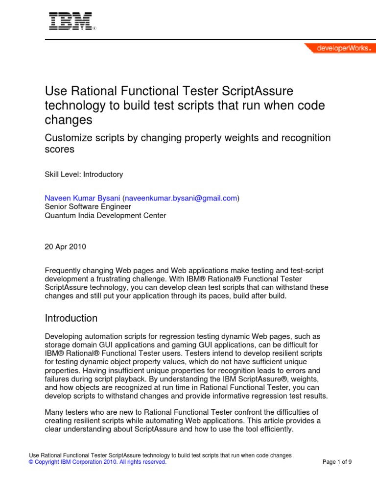 IBM® Rational® Functional Tester users. Testers intend to develop resilient scripts