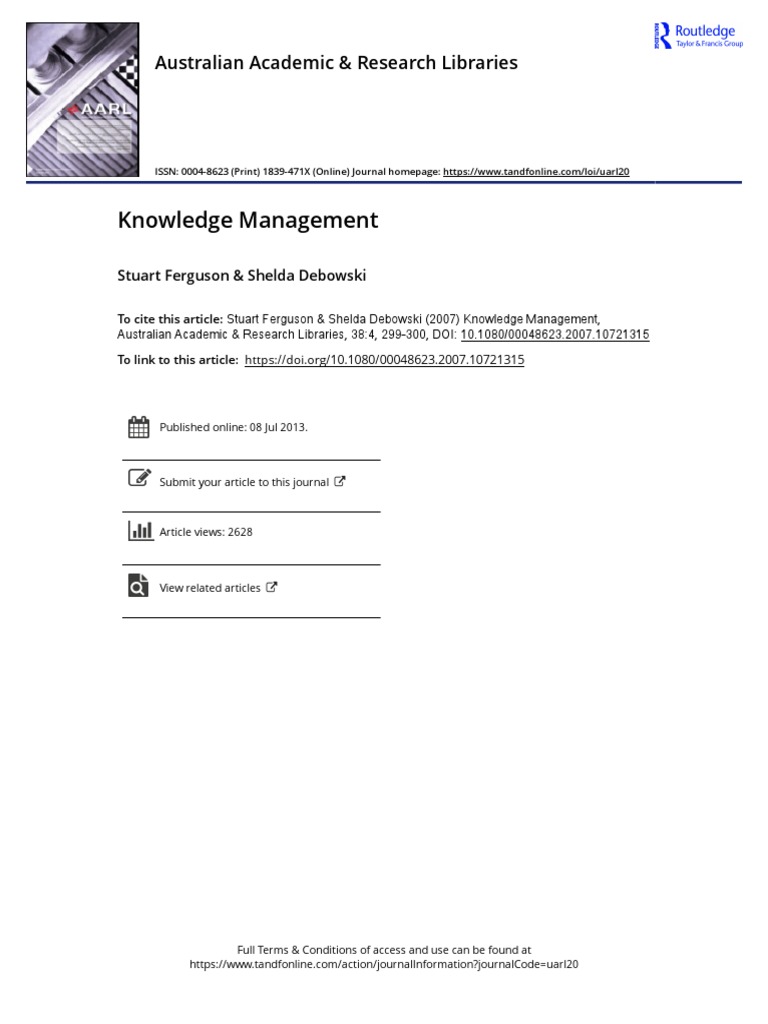 To cite this article: Stuart Ferguson & Shelda Debowski (2007) Knowledge Management,