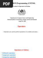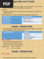 Operators: Arithmetic, Relational, Assignment, Logical, Membership, Identity, and