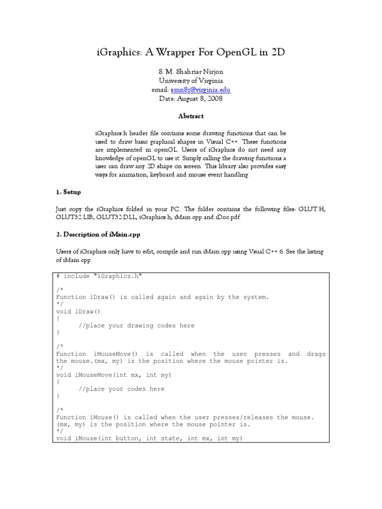 Users of iGraphics only have to edit, compile and run iMain.cpp using Vsual C++ 6. See the listing