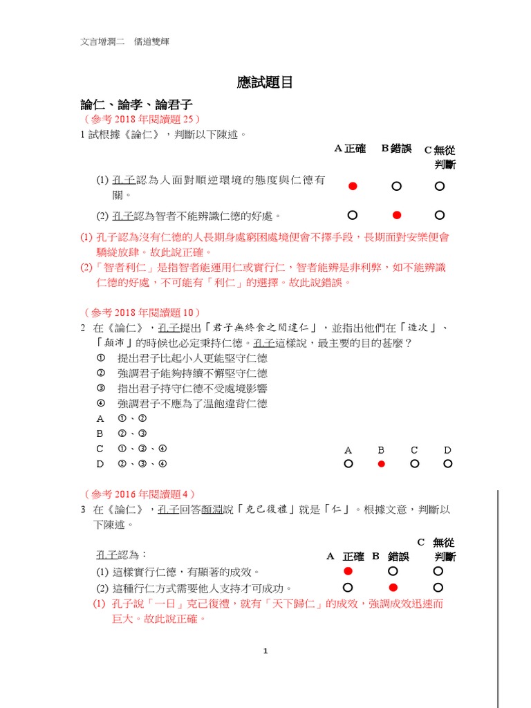 (1) 孔子認為沒有仁德的人長期身處窮困處境便會不擇手段,長期面對安樂便會