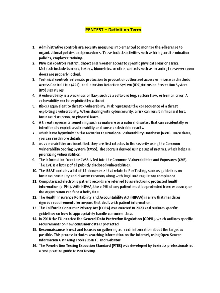 covers and does not cover. This would be established prior to the beginning of the PenTest and