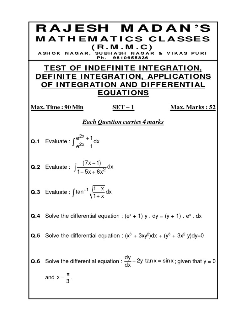 Max. Time : 90 Min SET – 1 Max. Marks : 52