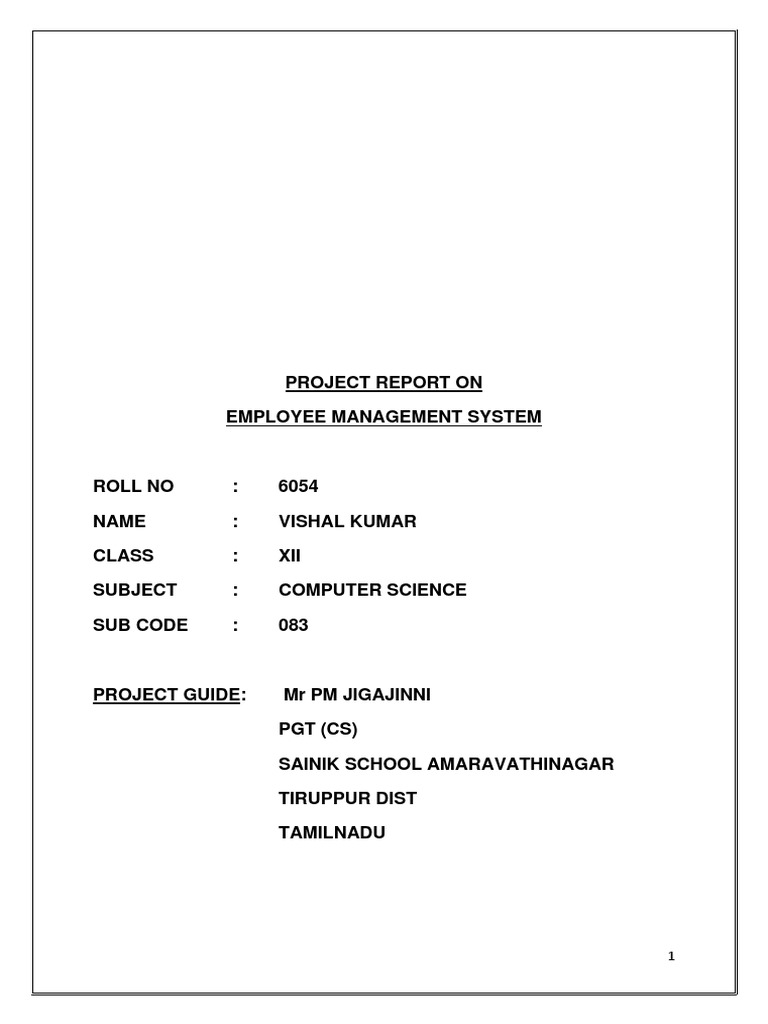 EMPLOYEE MANAGEMENT SYSTEM in the subject Computer Science (083) laid