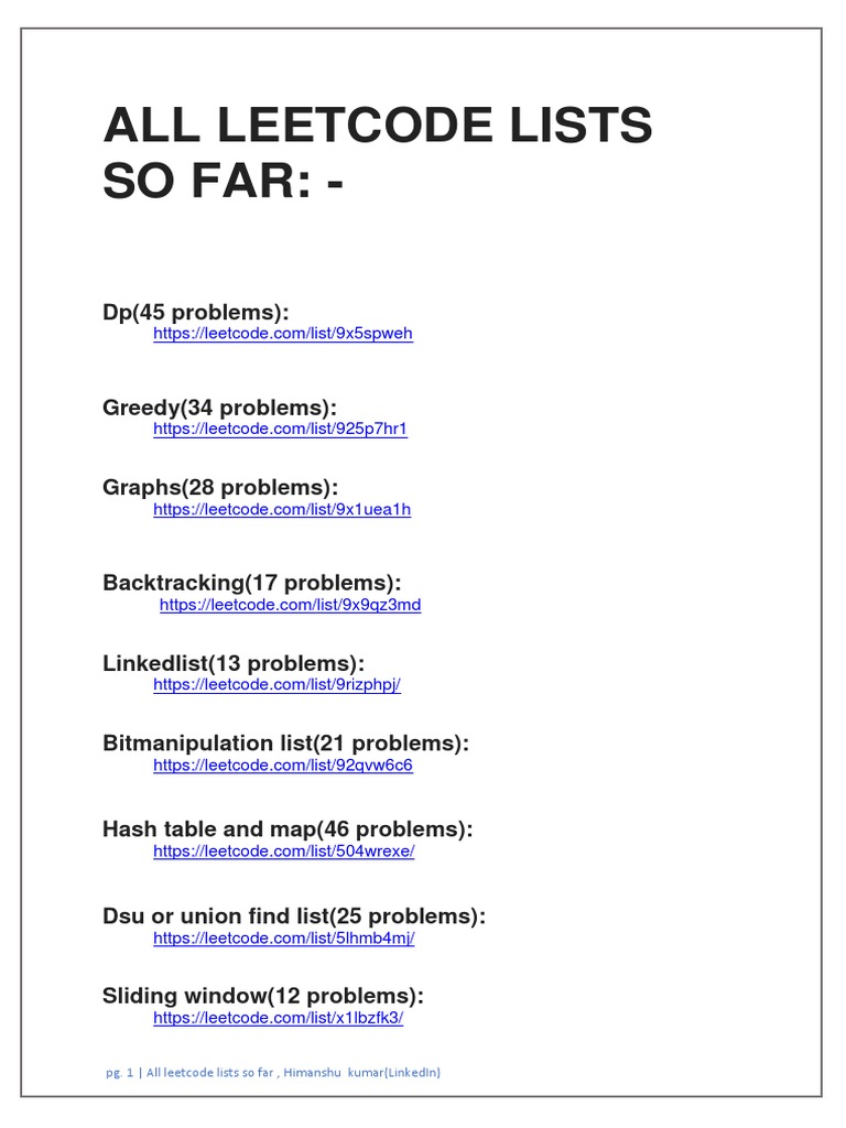 pg. 1 | All leetcode lists so far , Himanshu kumar(LinkedIn)