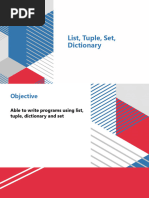 comprehension; Dictionaries: operations and methods, comprehension;