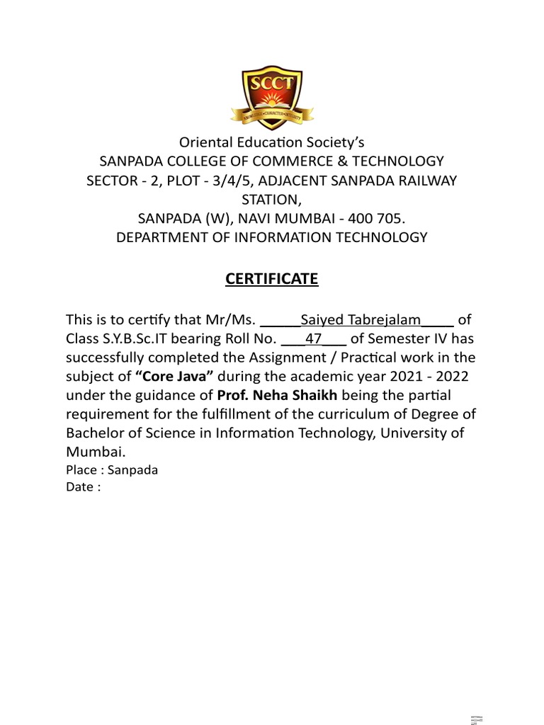This is to certify that Mr/Ms. _____Saiyed Tabrejalam____ of