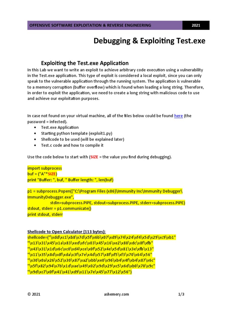 OFFENSIVE SOFTWARE EXPLOITATION & REVERSE ENGINEERING 2021