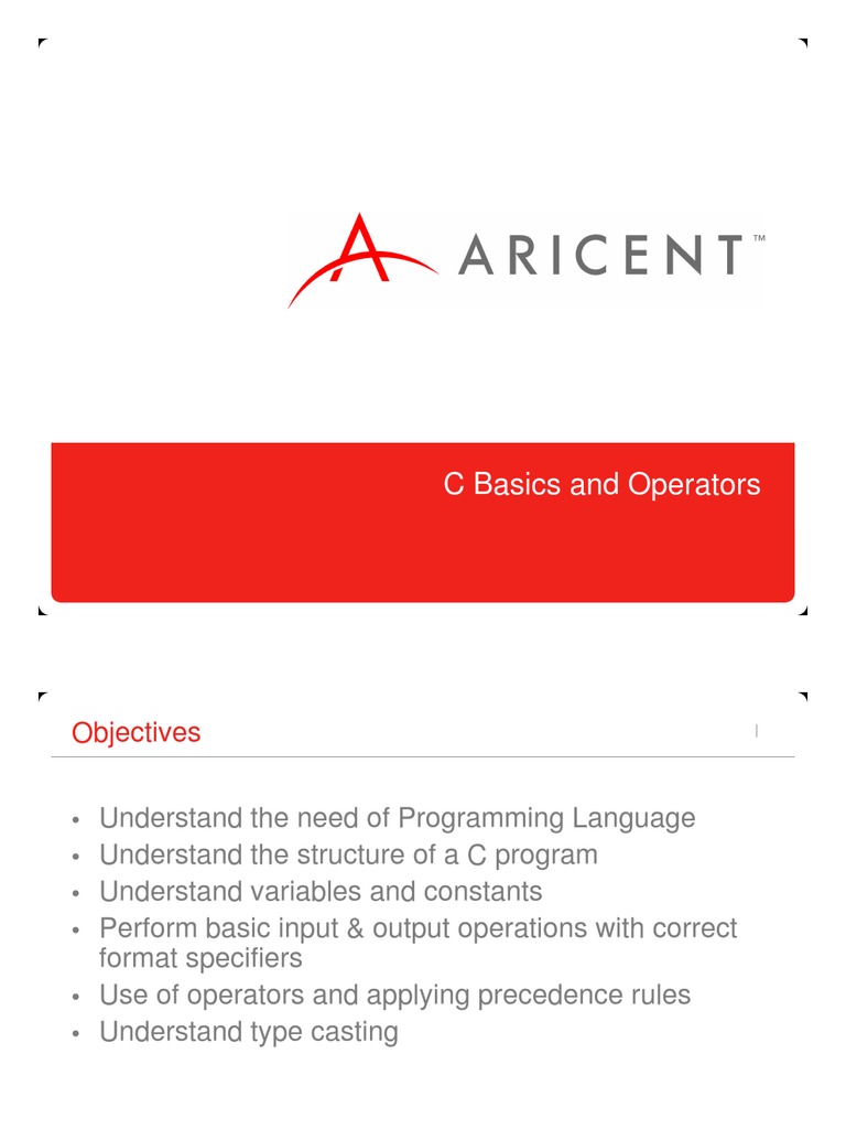 Understand the need of Programming Language Understand the structure of a C program Understand variables and constants Perform basic input & output operations with correct