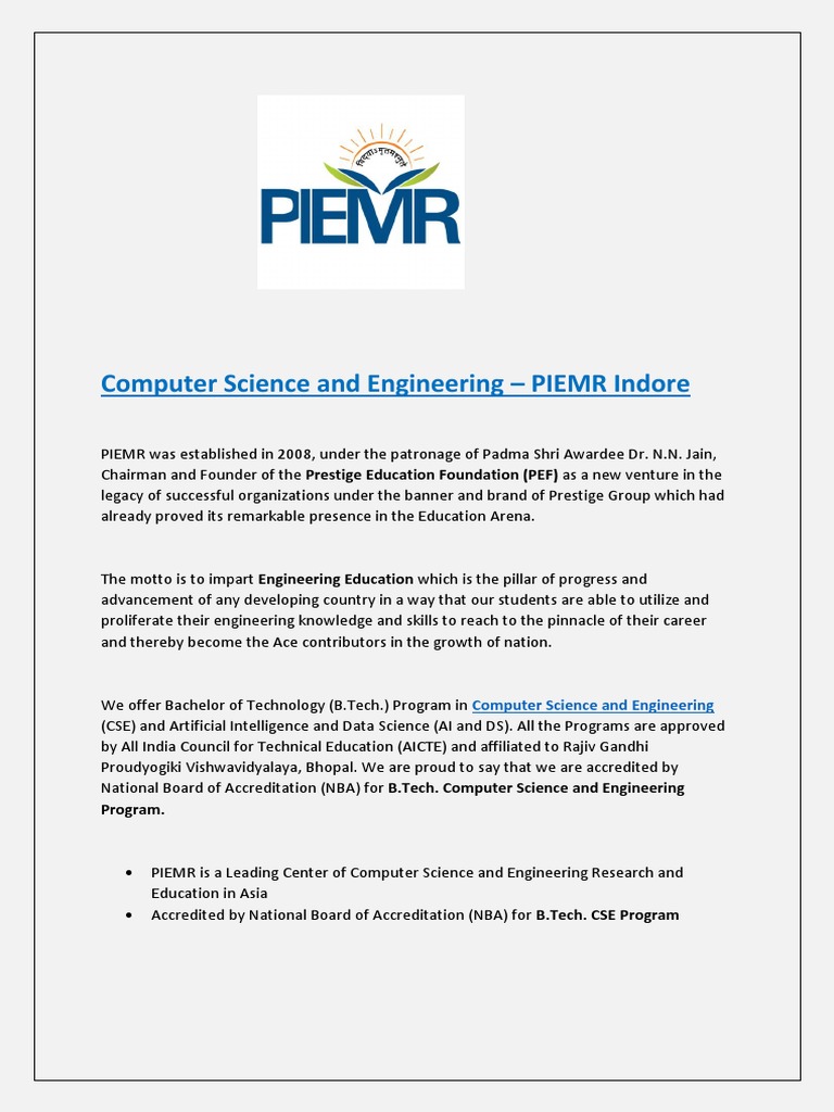 PIEMR is a Leading Center of Computer Science and Engineering Research and