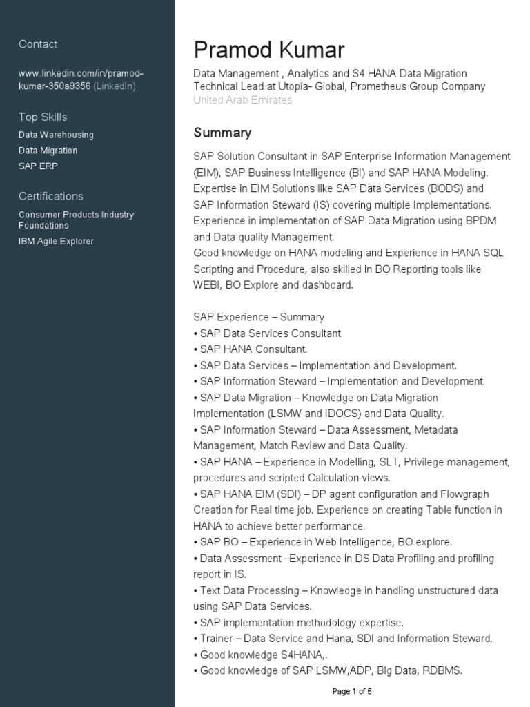www.linkedin.com/in/pramod- Data Management , Analytics and S4 HANA Data Migration