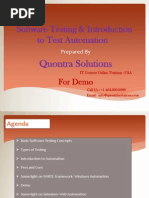 The Benefits of Automated Testing Understanding SilkTest Basics SilkTest Features Understanding the Segue Testing Methodology SilkTest File Types Exploring the SilkTest Window Using SilkTest with Web Applications