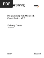After completing this module, you will be able to: List the benefits of ADO.NET. Create applications by using ADO.NET. List the main ADO.NET objects and their functions. Use Visual Studio .NET data designers and data binding. Explain how XML integrates with ADO.NET. Module 9: Developing Components in Visual Basic .NET Topics Components Overview Creating Serviced Components Creating Component Classes Creating Windows Forms Controls Creating Web Forms User Controls Threading After completing this module, you will be able to: Create components that can be used by managed and unmanaged client applications. Use threading to create multithreaded applications. Module 10: Deploying Applications Topics Describing Assemblies Choosing a Deployment Strategy Deploying Applications After completing this module, you will be able to: List the different types of application deployment. Deploy a component assembly. Deploy an application based on Windows. Deploy a Web-based application. Module 11: Upgrading to Visual Basic .NET Topics Deciding Whether to Upgrade Options for Upgrading Recommendations Performing the Upgrade After completing this module, you will be able to: Make an informed decision about whether to upgrade an application. Describe the various upgrade options available to you. Use the Upgrade Wizard