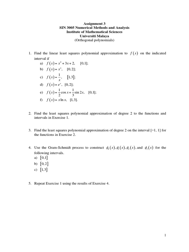 1. Find the linear least squares polynomial approximation to f ( x ) on the indicated