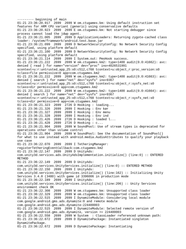 01-21 23:36:21.222 2699 2699 W om.ctugames.km2: type=1400 audit(0.0:41663): avc: