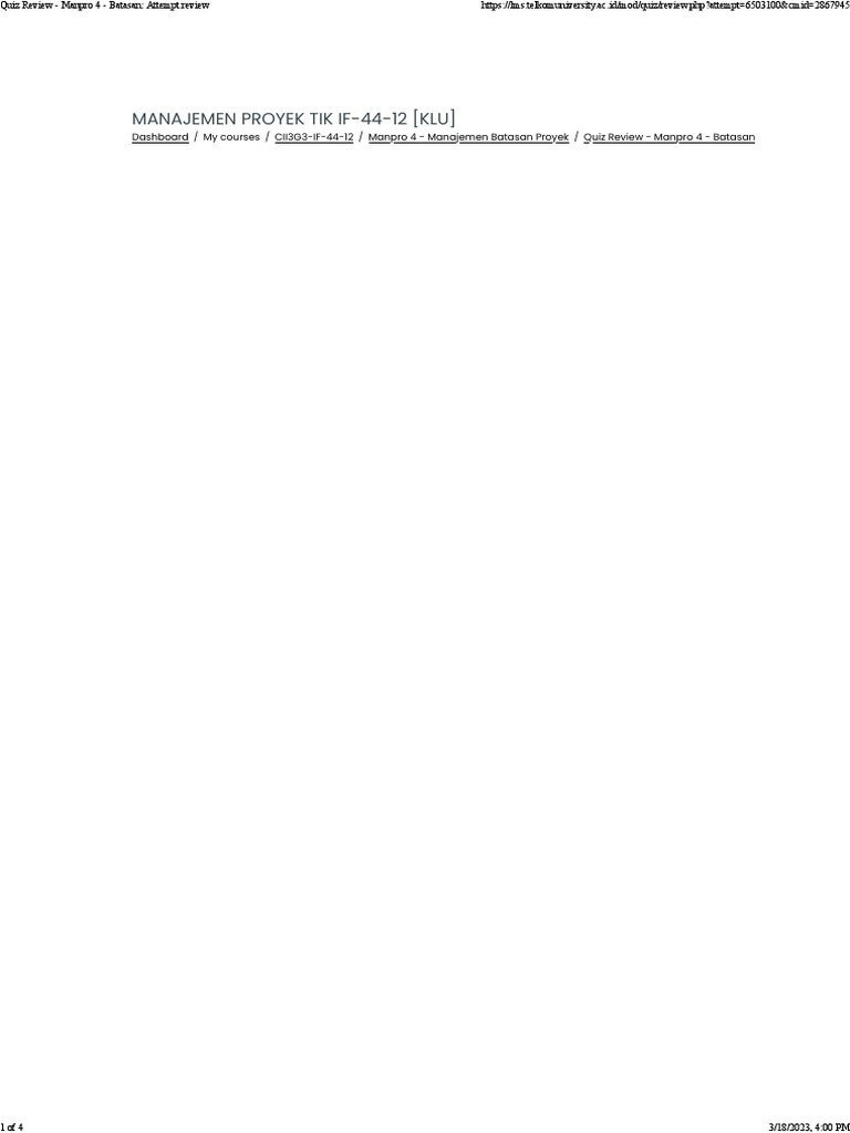 Quiz Review - Manpro 4 - Batasan: Attempt review https://lms.telkomuniversity.ac.id/mod/quiz/review.php?