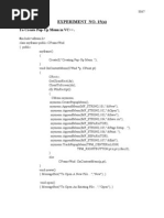 These functions ensure that the View menu Status Bar command is properly linked to the new status bar. Edit the OnDraw() function in View.cpp. The OnDraw() function displays a message in the view window. Add the following code: void CMymfc12View::OnDraw(CDC* pDC) { pDC->TextOut(30, 30, "Watch the status bar while you move and click the mouse."); } Add a WM_MOUSEMOVE handler in the View class. Use ClassWizard to map the message to OnMouseMove() and then edit the function as shown below. This function gets a pointer to the status bar object and then calls the SetPaneText() function to update the first and second message line panes. void CMymfc12View::OnMouseMove(UINT nFlags, CPoint point) { CString str; CMainFrame* pFrame = (CMainFrame*) AfxGetApp()->m_pMainWnd; CStatusBar* pStatus = &pFrame->m_wndStatusBar; if (pStatus) { str.Format("x = %d", point.x); pStatus->SetPaneText(0, str); str.Format("y = %d", point.y); pStatus->SetPaneText(1, str); } }