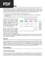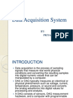 The purpose of data acquisition is to measure an electrical or physical phenomenon such as voltage, current, temperature, pressure, or sound. PC-based data acquisition uses a combination of modular hardware, application software, and a computer to take measurements. While each data acquisition system is defined by its application requirements, every system shares a common goal of acquiring, analyzing, and presenting information. Data acquisition systems incorporate signals, sensors, actuators, signal conditioning, data acquisition devices, and application software. So summing up, Data Acquisition is the process of: Acquiring signals from real-world phenomena Digitizing the signals Analyzing, presenting and saving the data