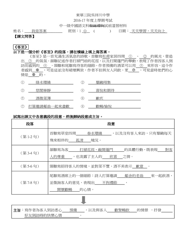 姓名:____我是答案_________ 班別:1 _O__ ( ) 日期:_天天學習,天天向上