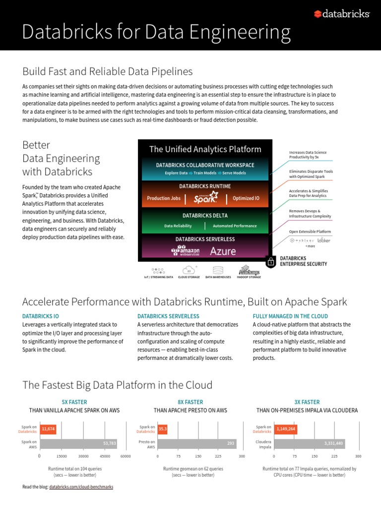 Databricks’ Unified Analytics Platform removes the complexity of data engineering while accelerating performance of data engineering tasks