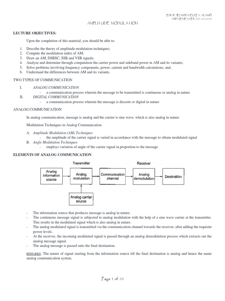 - The continuous message signal is subjected to analog modulation with the help of a sine wave carrier at the transmitter.