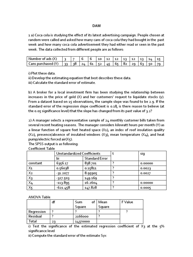 i) Test the significance of the estimated regression coefficient of X3 at the 5%