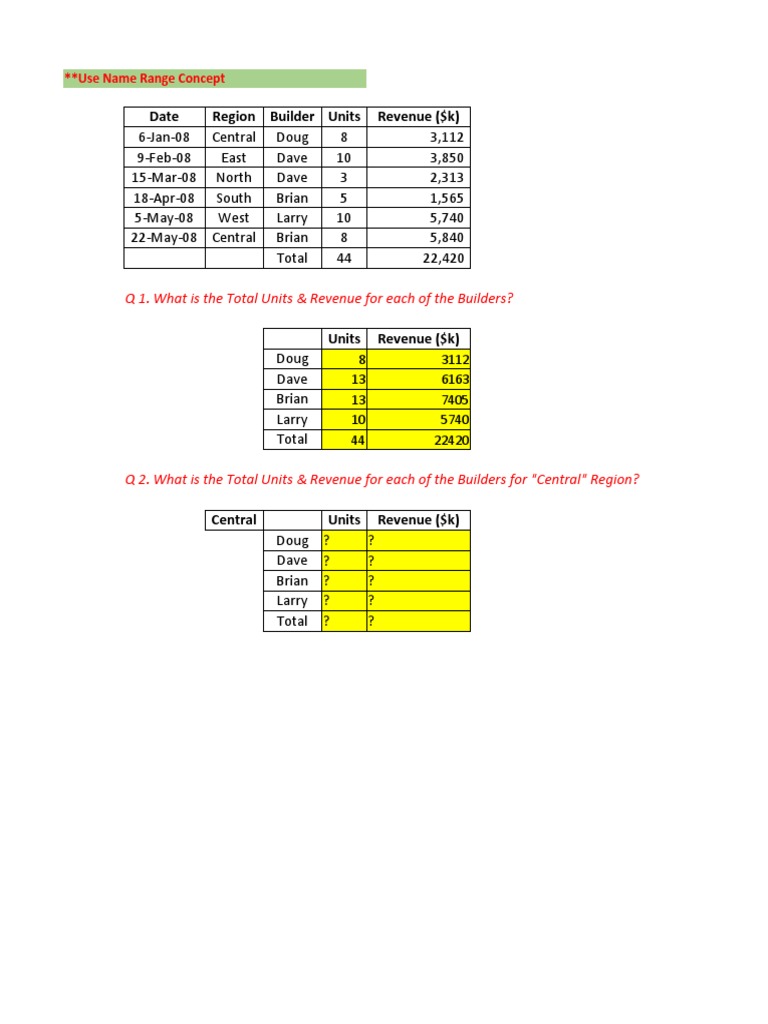Q 1. What is the Total Units & Revenue for each of the Builders?