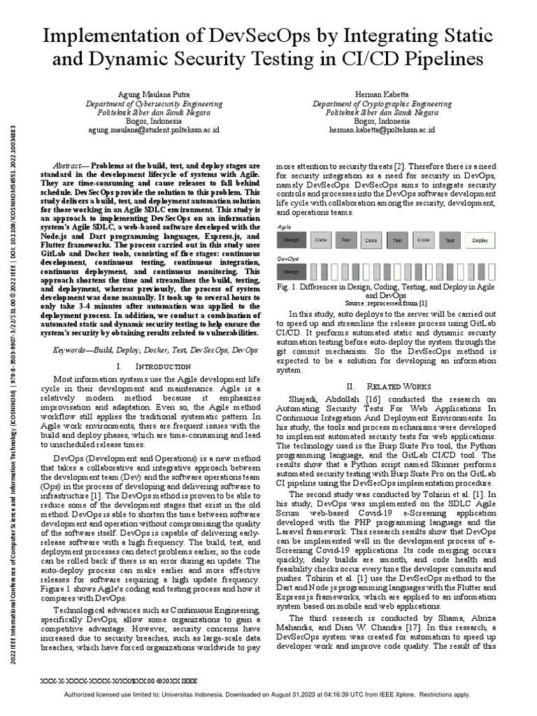 [4] B. A. Skurla, “DevOps Integration of Security Practices,” p. 55, 2020. [17] “DevSecOps: Incorporate Security into DevOps to Reduce Software