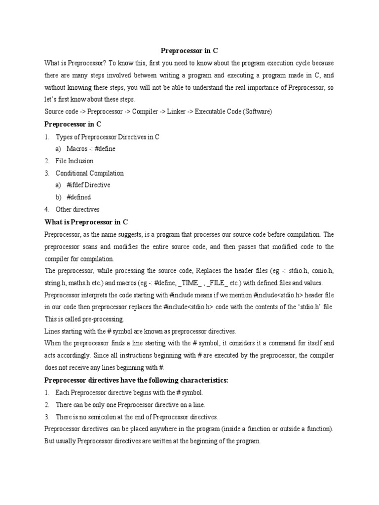 Preprocessor, as the name suggests, is a program that processes our source code before compilation. The