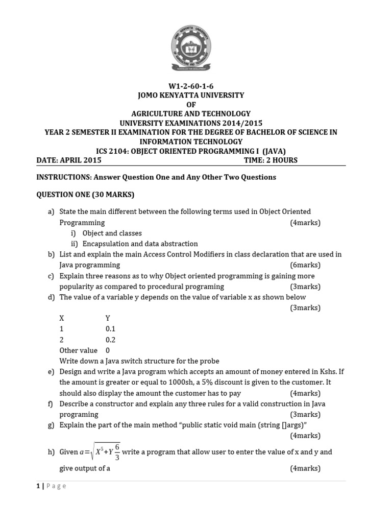 ICS 2104: OBJECT ORIENTED PROGRAMMING I (JAVA)